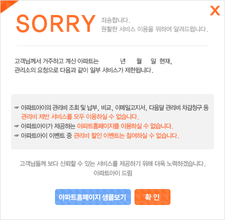 ȸ¿ø´ÔÀÇ ´ÜÁö °ü¸®»ç¹«¼Ò¿¡¼­ ¾ÆÆÄÆ®¾ÆÀÌ ¹«·áÁ¦°ø ȨÆäÀÌÁö¸¦ ¿î¿µÇÏÁö ¾ÊÀ» °æ¿ì, ÀÌ¿ë ½Ã ¾î·Á¿òÀÌ Àְųª ÀÌ¿ë ÀÚü°¡ ºÒ°¡ÇÒ ¼öµµ ÀÖ½À´Ï´Ù.